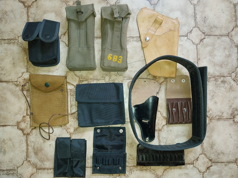 Biete aus einem Nachlass diverse Magazintaschen, Patronenetui,Holster usw. Zustand und Art siehe Bild.Bei Fragen gerne melden. Verkauf erfolgt ohne Garantie und Gewährleistung.