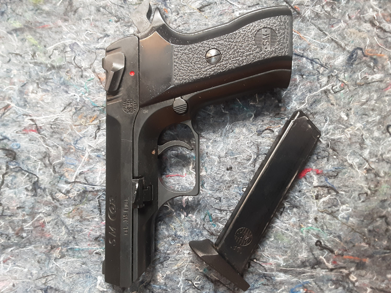 Etwas schickes, eine SM Selbstlade Pistole SM Cop. Kaliber .315 Knall, PTB 624 in gebrauchtem Zustand. Ich habe damit nicht geschossen. Trockenfunktion ist gegeben. Kei weiteres Zubehör. Zum schießen eigentlich zu Schade. Wird nicht oft angeboten.