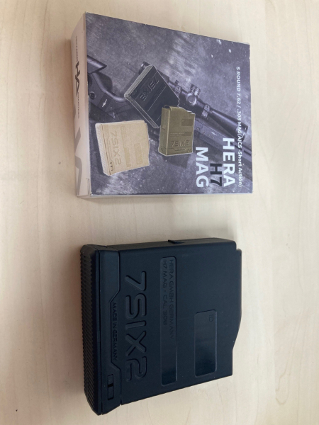 Zum Verkauf kommt ein Magazin HERA H7 5 Schuss .308 Win. u.ä., Farbe schwarz, für AICS. Passt entsprechend auch in Magpul, MDT u.ä. Schäfte. Neu und unbenutzt in OVP.