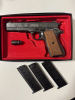 Ich löse die Sammlung meines Vaters auf. Biete eine ME General 800 Schreckschusspistole im Kaliber 9mm Knall mit der PTB 537 an. Klassische Pistole im 1911-Design, hergestellt in Italien. Zustand: Gebraucht mit altersbedingten Gebrauchsspuren (siehe Bilder). Technisch funktionsfähig. Lieferumfang ME General 800 3 Magazine Abschussbecher für Signalmunition Originalbox Alles wie auf den Bildern zu sehen.