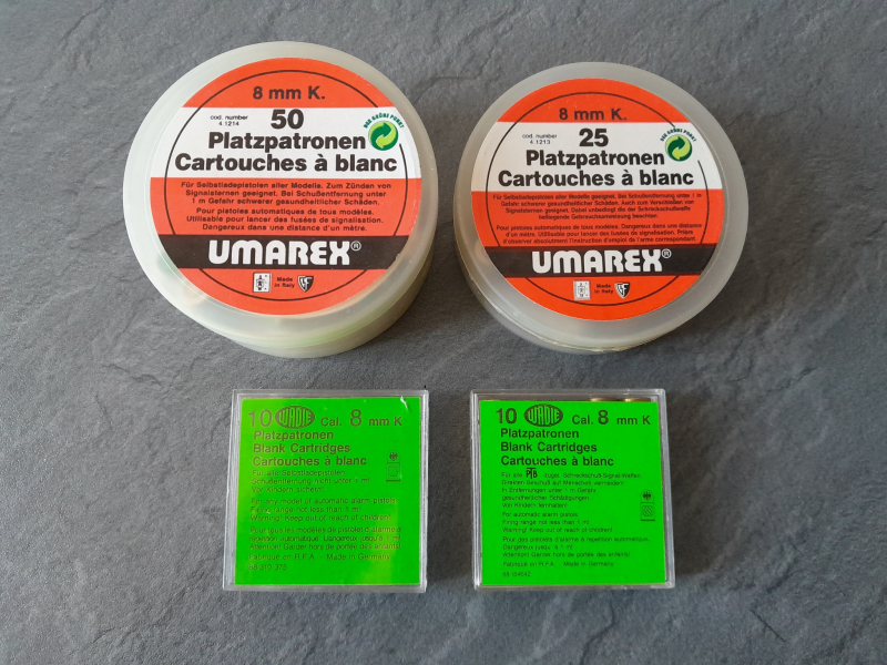 Biete hier ein Konvolut 8mm Knall Kartuschen, stammen aus den 80er oder 90er Jahren.