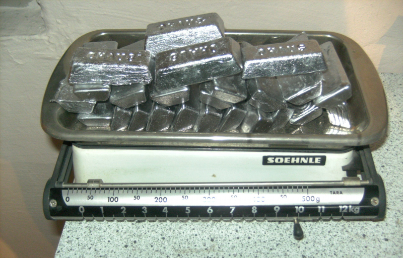 angeboten werden 10 Kg Blei für Lang und Kurzwaffen Geschosse welche Hartblei benötigen - die Härte ist im oberen Bereich durch Zugabe von Letternmetall mit Zinn + Antimon, weiteres siehe Foto