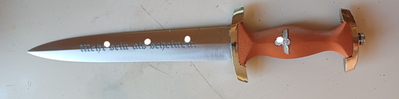 Bitte schauen Sie sich die Fotos an, welche Bestandteil dieser Auktion sind. Wenn Sie noch weitere Fragen haben, oder Sie möchten weitere Fotos, bitte kurz schreiben. Ob dieser Dolch ein Original ist, kann ich leider nicht beurteilen, aber er ist in einer TOP Qualität. Dies ist eine Privatauktion, daher keine Garantie, keine Rücknahme, kein Umtausch oder sonstige Nachverhandlungen. Die Versandkosten beziehen sich nur für Deutschland (ohne Inseln). Versandkosten in das EU-Ausland bitte vorher zu erfragen. Versand erfolgt als versichertes DHL Paket. Ich wünsche viel Freude bei dieser Auktion.Verkauf erfolgt unter Einhaltung des Paragrafen 86a STGB