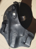 Andebot: hochwertige lederholster von Fa. Bucheimer. Gepflegte zustand, Leder 3 mm stark, biegsam und nicht spröde. Nähte sind alle komplet und in Ordnung. Gefederte druckknopf rastet hörbar ein. Gurtschlaufen sind für breiten bis 5 cm. vorgesehen. unten ( laufmündung seite ) offen. Im handel nicht mehr zu bekommen. Auf dem Holster ist folgendes eingeprägt: BUCHEIMER PAT. NO. 4.062.481 und B-01-004-81-T . Eignet sich unter anderem für SIG 229-er reihe sowie S&W M&P "Combat Master" ( Ein SIG P 229 P war ganze zeit drin ). Photo zeigt "Körperseite", es handelt sich exakt um abgebildete Holster. Weitere fragen, bessere photos, etc. gerne jederzeit per Anfrage hier. Versand als Warensendung oder auf Wunsch mit Sendungnr. dann aber € 6,25 versandkosten.