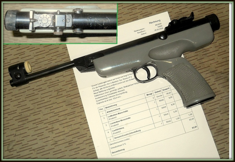 Beschreibung: ... aus Sammlernachlass ... alte DIANA 4,5mm Knicklauf-Luftpistole Mod.6 ... Frei ab 18 J. (vor 1970 / ohne F) ... gepflegter, Sehr schöner Zustand und voll funktionsfähig ... in Feb. 2024 wurden von einer Fachfirma einige Verschleissteile ausgetauscht (die Rechnung wird mitgeliefert) - lag danach, nach 10 Probeschüssen, nur in der Sammlung