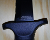 Wie bereits erwähnt, so ist die Schneide selbst unbenutzt und selbst der leiche Ölfilm ist noch auf der Klinge zu sehen, lediglich hier und das auf der Klingenbeschichtung sind geringfügige Kratzspuren zu sehen, welches vom öfteren Herausziehen und wieder einführen in die Messerscheide herführt, die Qualität des Messers jedoch in keinster Weise beeinträchtigt.