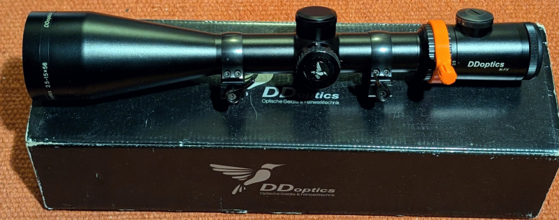Hallo, verkaufe mein DDoptics Zielfernrohr der Gen. 3. 2.5-15x56 NFX. Absehen 4N mit Leuchtpunkt (I-Fiber). MOA Verstellung. Montiert ist eine hochwertige Henneberg Picatinny Aufkoppmontage mit Schnellspannhebeln (verklebt) sowie ein Schnellverstellhebel für den Vergrößerungswechsel.