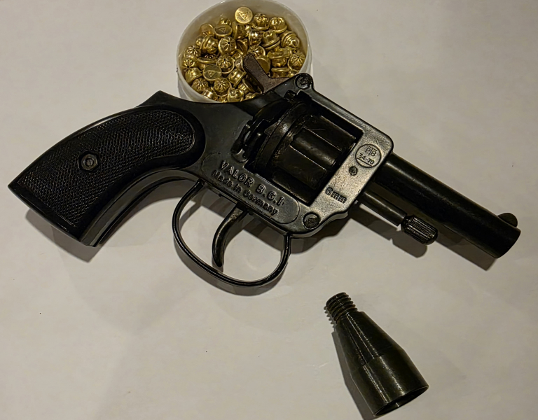 Hergestellt wurde dieses Modell von der Rudolf Weber jr. Stahlwarenfabrik (Made in Germany) und steht für die solide Verarbeitung und typische Qualität deutscher Schreckschusswaffen aus dieser Zeit. Der kompakte Revolver besitzt eine klassische Bauart mit Trommel und wird über eine Ladeluke bestückt.
