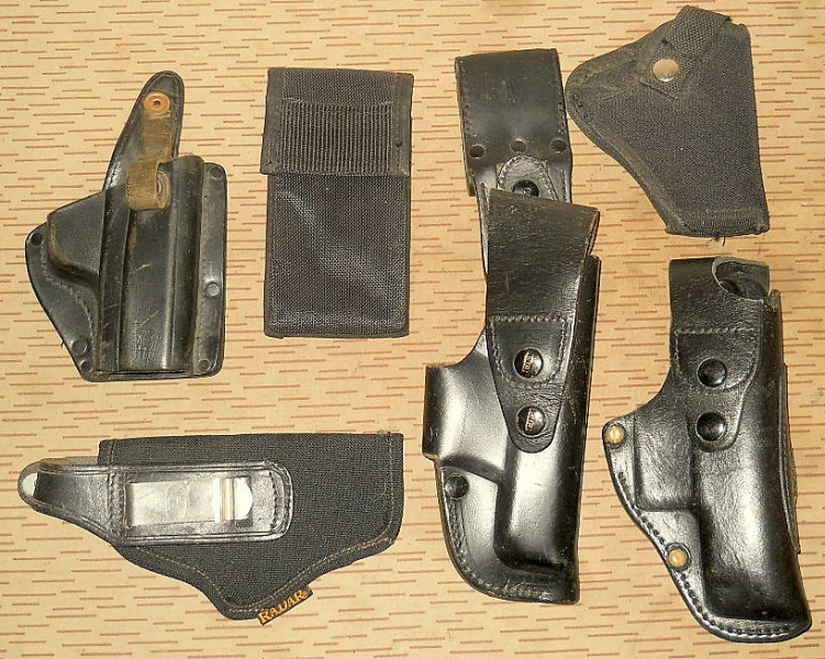 Artikelbeschreibung: ... Konvolut mir unbekannte Leder/Cordura – Holster Pistolentaschen ?- Polizei BGS Zoll Sport -? ... Zustand siehe Bilder