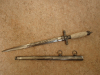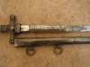 Die Scheide ist aus Leichtmetall geprägt. Der beigefarbene geriffelte Griff besteht aus Bakkelite.