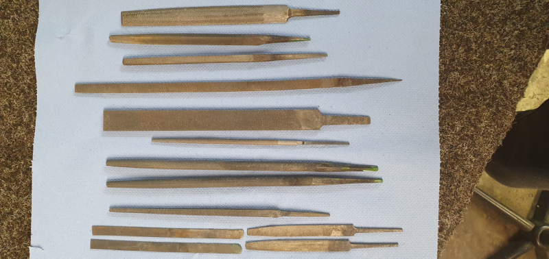 Diverse Feilen, verschiedene Hiebgrößen. Längste Feile etwa 29 cm, kürzeste etwa14 cm, Lagerware unbenutzt. Dabei Flach, Dreikant, Rund, Vierkant, Halbrund und Kontaktfeilen.