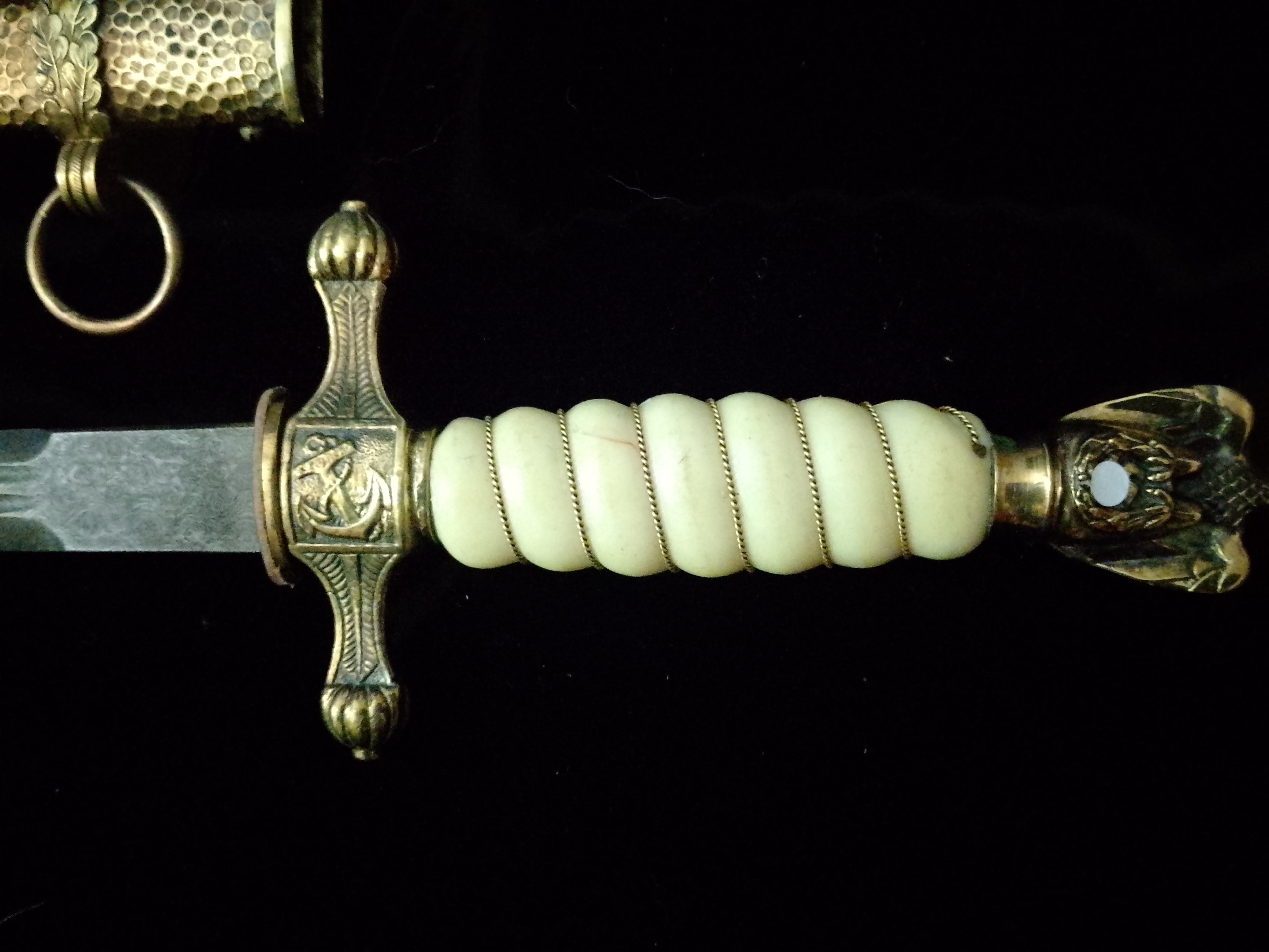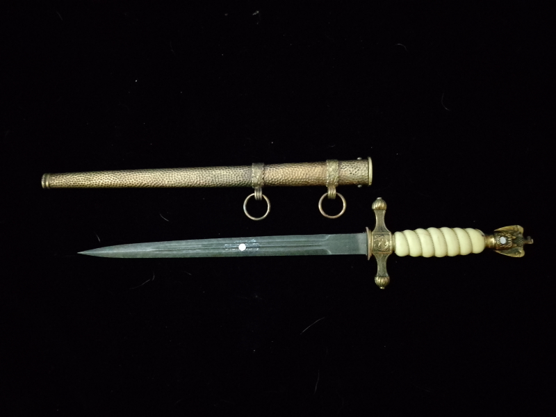 Marine Dolch drittes Reich, Messingmontur Parierstange mit Drücker gängig Adler mit HK, Trolol bzw Ersatzmaterial Griff mit Wicklung.