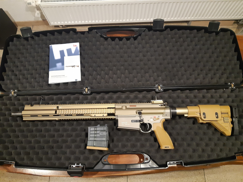 Lieferumfang: - H&K MR308 A3 28 RAL8000 - Notvisierung - 1x Magazin Original - Handbuch - H&K Koffer
