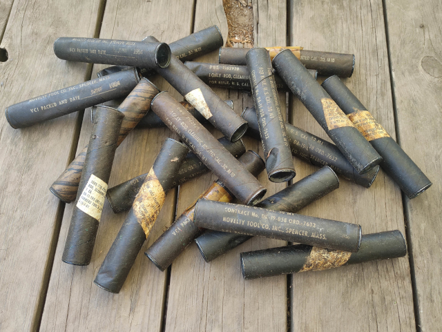 Zum Kauf steht jeweils ein originaler sowie unbenutzter und zusammenschraubbarer Putzstock M10 für das .30M1 Rifle - Garand M1, M1C / M1D oder M14. Die Umverpackung hat folgende Kennzeichnung ROD, CLEANING, JOINTED, CAL. 30, M10. Sämtliche Putzstöcke sind für die Langzeitlagerung so in Röhren versiegelt worden, zwei Verpackungen wurden von mir geöffnet. Auf die Originalität gebe ich Rückgaberecht. Seltenes und ungebrauchtes Ersatzteil der U.S. Army für das Schaftfach der Waffen und mittlerweile schwer in diesem Zustand zu bekommen. Die Gewinde der Reinigungselemente sind samt 5/32" und somit gleich zu den aktuellen Putzstöcken und Bürsten aus U.S.-Fertigung.