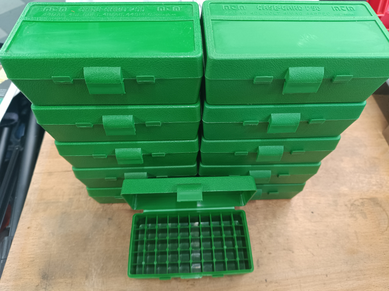 verkleinere meine Widerladeausrüstung. Deshalb kommen hier 11 MTM Case-Gard P50 für .44 Rem.Mag. oder .45 LC zum Verkauf. Leichte Gebrauchsspuren. Sehen Sie auch meine anderen Auktionen.