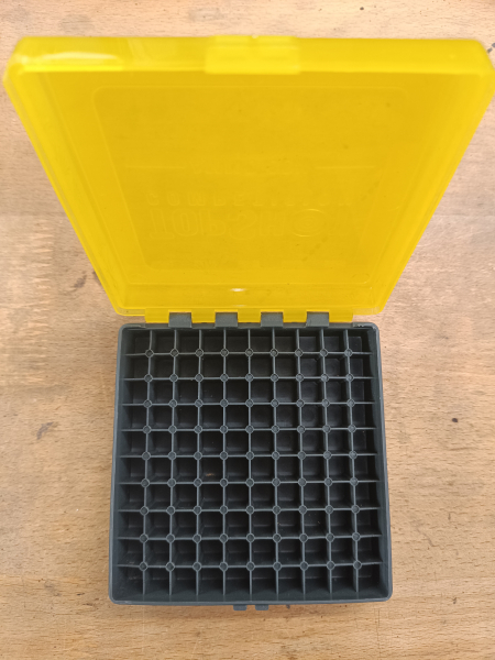 Hallo, verkleinere meine Widerladeausrüstung. Deshalb kommt hier 1 TopShot Patronenbox für 100 Stück 9x19 zum Verkauf. Leichte Gebrauchsspuren. Sehen Sie auch meine anderen Auktionen.