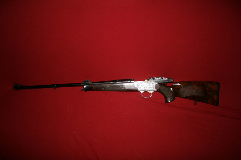 Exklusive Blaser R93 Afrika-Ausführung mit aufwendiger Big-Five-Gravur und umfangreichen Goldeinlagen. Einzelstück mit außergewöhnlicher Ausstattung.