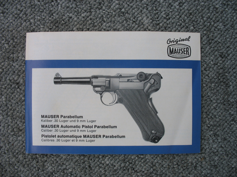 Bedienungsanleitung für die Pistole MAUSER Parabellum in neuwertigem Zustand.