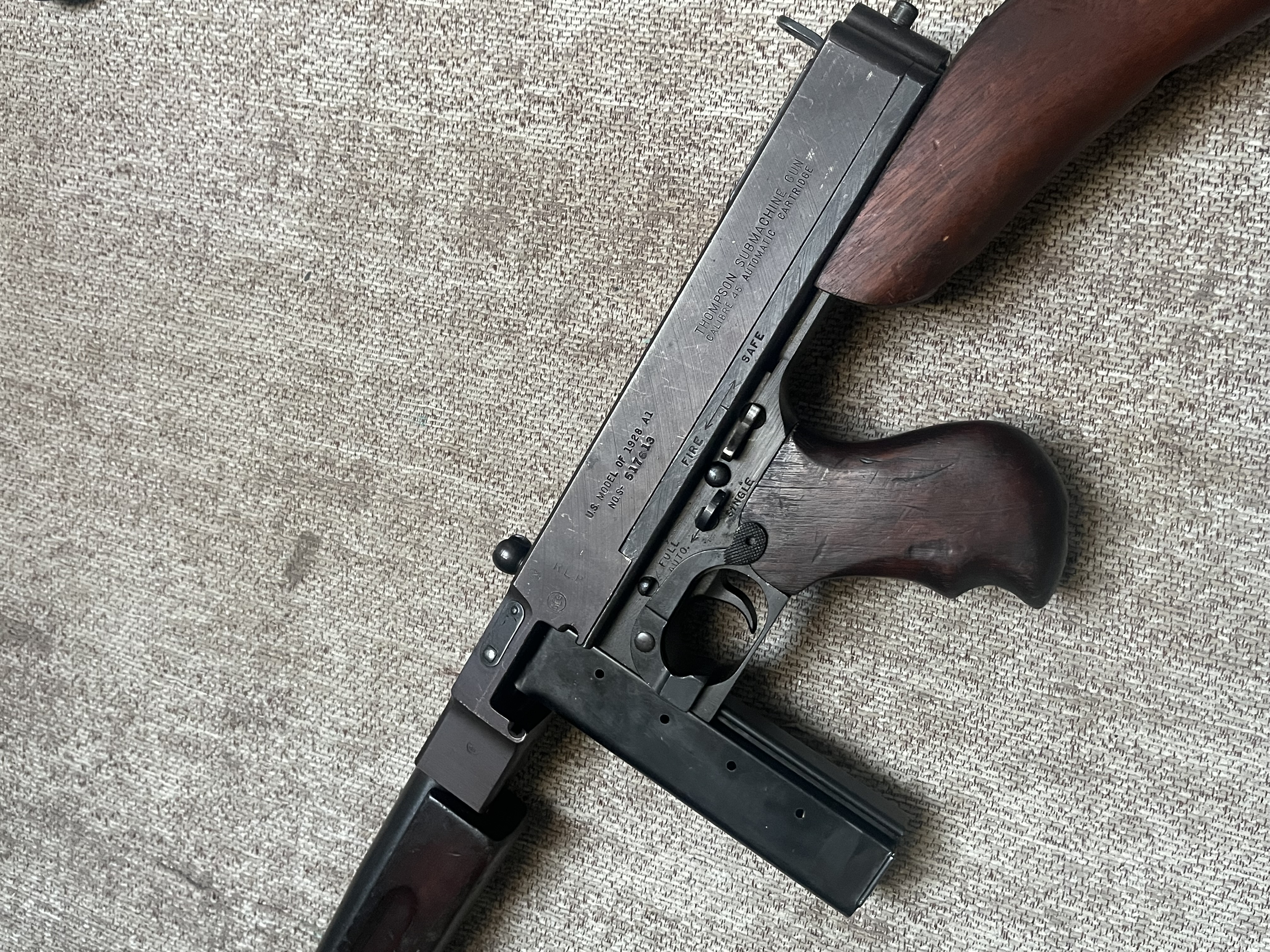 Schöne, zusammenpassende Thompson 1928A1 mit der Seriennummer „S“.