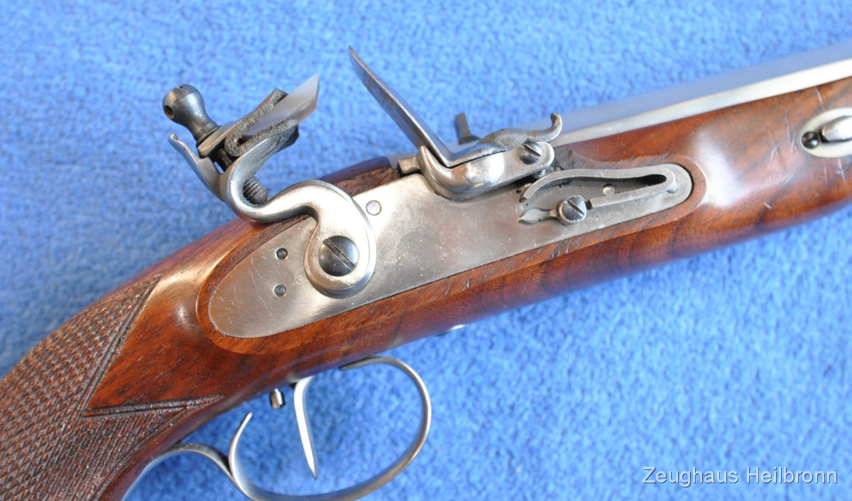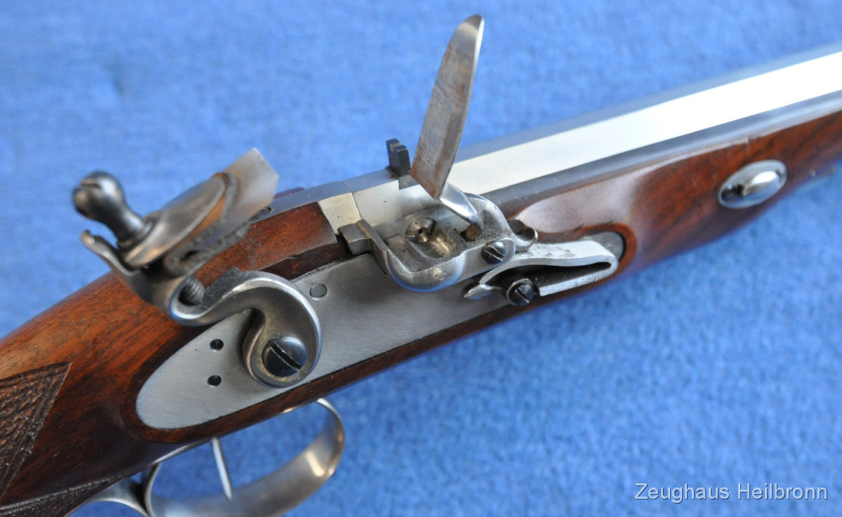 Waffe in einem sehr schönen Zustand, volle Funktion, Lauf sehr gut. Ladestock fehlt. Mit Stecherabzug.