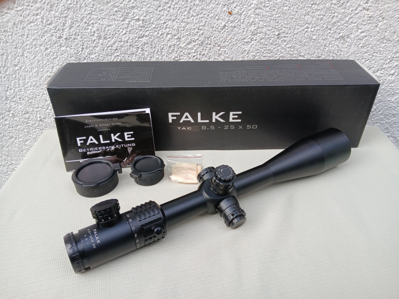 Hallo, verkaufe ein Falke 8,5 - 25x50 TAC Zielfernrohr mit MIL-Dot-Absehen. Auf Rot, Grün, Schwarz Mittelpunkt umstellbar. Hat 1/8 MOA Klickverstellung (=3,6 mm auf 100m). Keine Gebrauchspuren sichtbar, war auf ein KK Gewehr. Hatte also keine Belastung :-) Dies ist ein Privatverkauf. Keine Gewährleistung - Keine Garantie - Keine Rücknahme. Das Päkchen wird versichert verschickt.