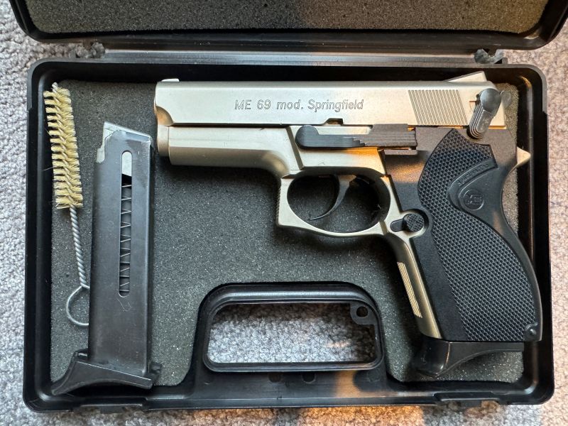 Ich biete hier eine ME 69 Springfield (Mini Para) Signalpistole, Matt vernickelt, 9mm P.A.K an.