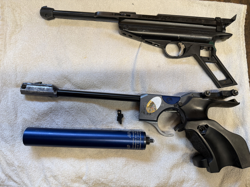 Die Hämmerli ist soweit funktionstüchtig, ggf. sind einige Dichtungen zu erneuern, die Feinwerkbau ist überarbeitungsbedürftig. Da beide längere Zeit nicht genutzt wurden, werden beide ausdrücklich als „defekt“ an Bastler angeboten.