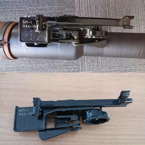 Ein sehr seltenes mechanisches Zusatzvisier für den RPG-7-Granatwerfer, entwickelt für das präzise Schießen mit OG-7-Splittergranaten auf Entfernungen von 100 bis 1000 Metern.