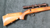 Anschütz Mod. 1532, Kal. .222Rem., altersgemäß guter Zustand, Metallteile ohne Flugrostspuren, teilweise leichter Abrieb in der Brünierung, der Schaft ist derzeit lackiert und hat einige ordentliche (allerdings oberflächliche) Kratzer. Wenn man den Schaft zum Ölschaft umarbeitet, kommt da eine wunderschöne Maserung zutage. Per Aufschubmontage ist ein Anschütz 4x mit Absehen 1 montiert. Kleine Schönheitsfehler: Das Korn fehlt und der Magazinboden ist beschädigt (Magazin funktioniert aber). Die Waffe verfügt über einen deutschen Stecher und eine seitliche Flügelsicherung. Beschuß 1965, Lauf blank. Schußleistung sehr gut, siehe Bild: 5 Schuß mit 3,4g RWS Jagdmatch auf 100m. Lauflänge 60cm, Schaftlänge 34,5cm, Gesamtlänge 108cm.