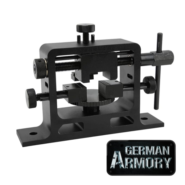 Passend für die meisten Waffen, kann zur Montage/Demontage von Kimmen & Körnern, sowie deren Ausrichtung eingesetzt werden. Tischmontage möglich.