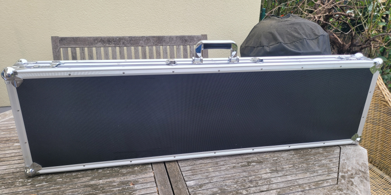 Angeschafft wurde der Koffer um die Flinte mit montierter Schuss Kamera, SHOTKAM transportieren zu können, ohne jedes Mal die Kamera abschrauben zu müssen, deshalb ist das ein etwas längerer Koffer als üblich mit den Außenmaßen 118 x 34 x 13 cm, Innenmaße 114 x 30,5 cm,