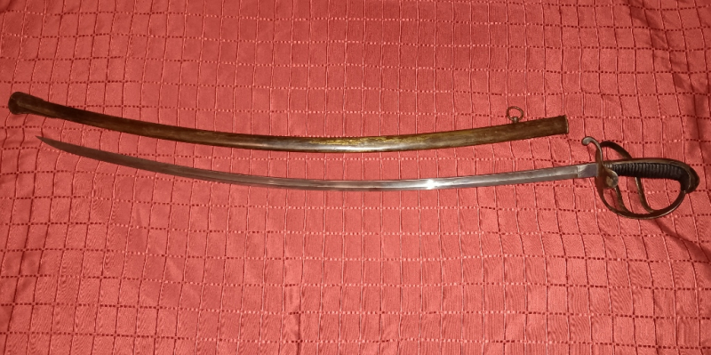 BAYERISCHE KAVALLERIE SABEL KÖNIG LUDWIG I. SCHÖNE FEINE GEKRÜMMTE KLINGE BEIDE SEITIG DER HERRSCHER MONOGRAMM,MIT METALLSCHEIDE DER UNTERSTE TRÄGERING DAMALS OFFIZIELL ENTFERNT WURDE!!