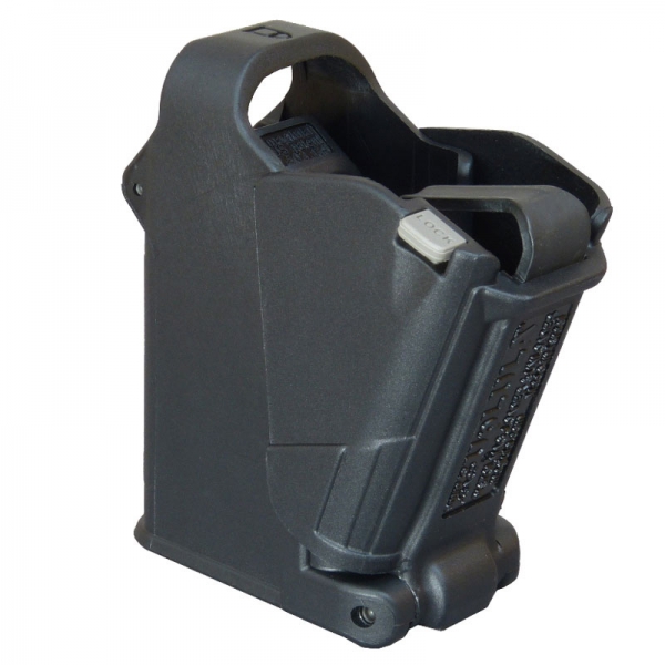 Lädt alle* Kaliber 9mm Luger, .357 Sig, 10mm, .40, und .45ACP ein- und zweireihige Magazine, einschließlich 1911er Magazine aller Hersteller. Lädt auch die meisten .380ACP Single- und Double-Stack-Magazine.