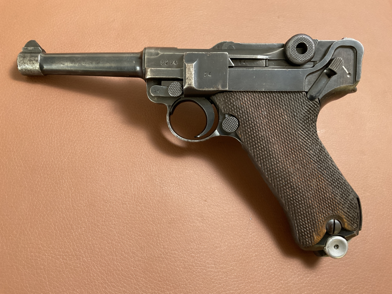 Zum Verkauf steht eine Pistole Mauser P08, codiert mit S/42, gefertigt im Jahr 1938.