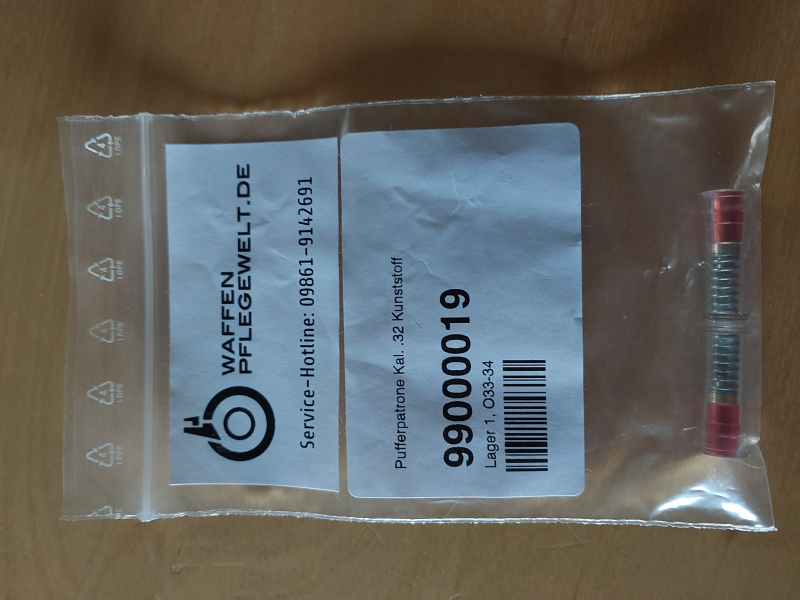 2 Stück Pufferpatronen im Kaliber .32, mit gefederter Auftrefffläche für Schlagbolzen