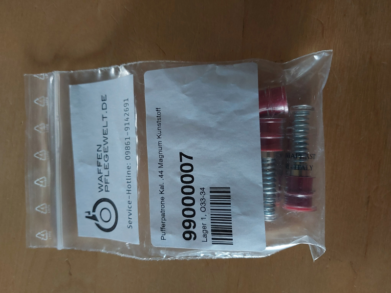 5 Stück Pufferpatronen im Kaliber .44 Magnum, mit gefederter Auftrefffläche für Schlagbolzen