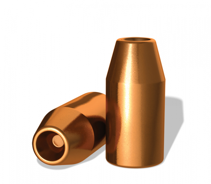 verkupfertes Bleigeschoss mit zusätzlicher Kunststoffschicht