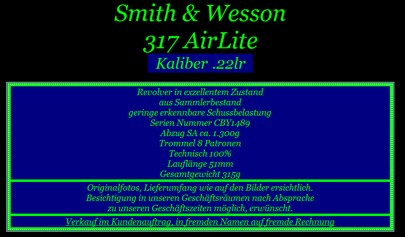 Versand ins Ausland möglich, anfallende Kosten & Gebühren trägt Käufer. Anbieter dieser Auktion: Waffen Lachenmaier GbR, Entengasse 5, 76275 Ettlingen
