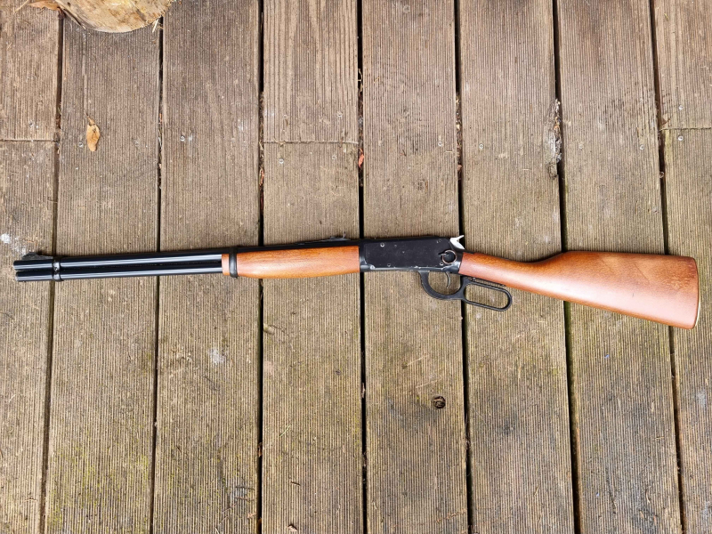 Biete ein sehr schönes Winchester Luftgewehr, Mod. 1894 von Daisy an. Es hat einen Holzschaft, der Unterhebel ist aus Metall, Visierschiber und Sattelring sind auch vorhanden.. Es dürfte ca. in den 70er - 80er Jahren hergestellt worden sein (auf Grun des Alters keine Gewährleistung). Der Druck ist gut für diese Klasse und es macht Spaß damit zu schießen (Bedienung wie bei der echten Wimchester). Es verschießt Stahlkugeln im Cal. 4,5 mm. Magazinkapazität ca. 30 bis 40 Kugeln. Die Fotos sind Bestandteil der Auktionsbeschreibung.