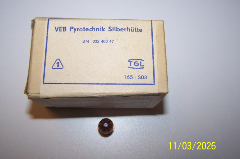 1Packung o. Munition für Bolzenschußgeräte aus der ehemaligen DDR, VEB Pyrotechnik Silberhütte, in ungeöffneter Originalverpackung,