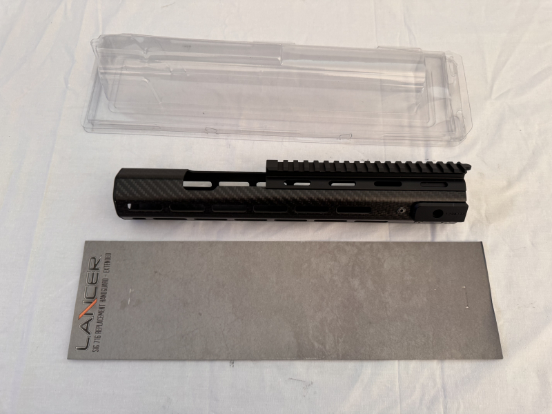 Der Handschutz besteht aus einem Oktagon-Carbonfaser-Tubus mit einer stabilen Aluminium-Aufnahme inklusive Picatinny-Schiene. Ein Ausschnitt im Bereich des Gasblocks ermöglicht weiterhin den Zugriff auf die Gasverstellung.