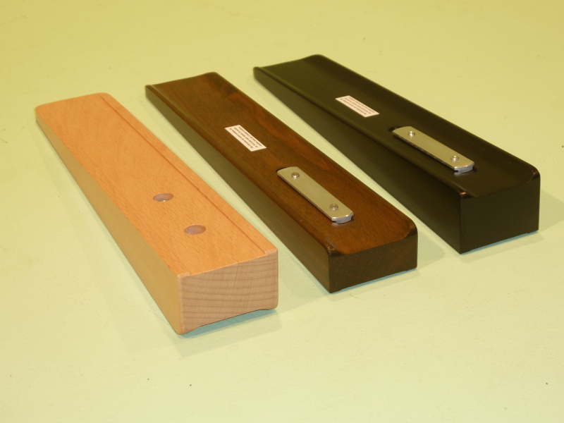 2-Punkt Auflagekeil aus Buchenholz mit 4-fach Treppenlack und stabiler langer Klemmschiene mit zwei Schrauben-Befestigung.