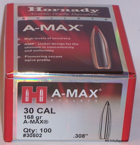 100St. HORNADY A-MAX Geschosse im Kal. .30 (.308Dia.)
