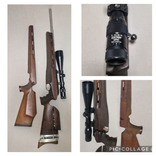 Zusätzlich ein jagdlicher Matchschaft aus Nussbaumholz mit Punzierung, Kaisergriff und Gummischaftkappe.