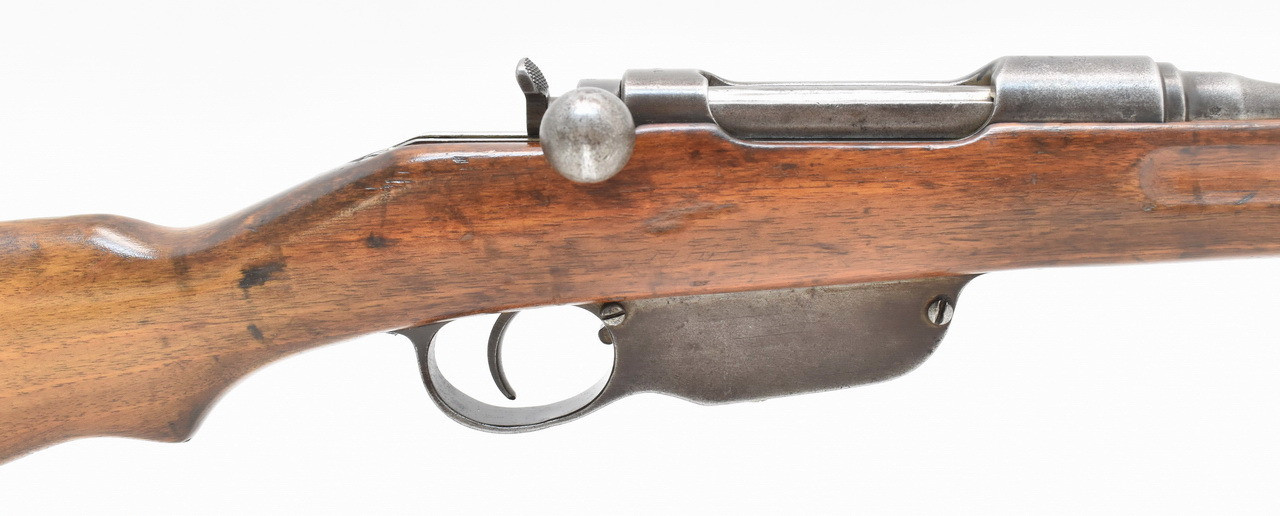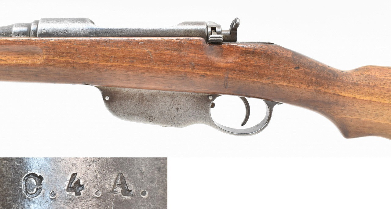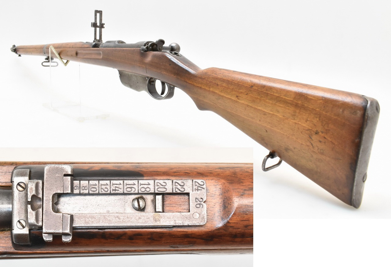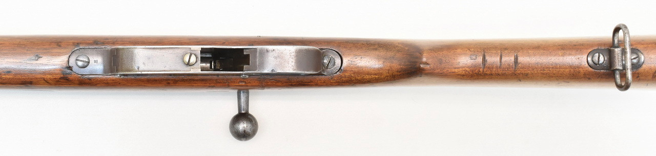 K.u.K. " Ruck-zuck " Infanteriegewehr Steyr - Mannlicher Modell 1895 mit Geradezug - System. Matter und rauer Originallauf mit Ulmer Beschuß 1971. Köpf, Leonberg Vertriebsstempel. Laufwurzel mit Stempelung der Wiener Abnahmekommission des Jahres 1908. Systemhülse und Lauf mit identischer Nummer. Oberring mit fehlendem Pyramidendorn. Unüberarbeitete Metallteile mit deutlich beriebener und patinierter Oberfläche. Mit altersentsprechenden Trage-, Gebrauchs- und Lagerungsspuren einer geführten Militärwaffe. Details siehe Bilder.
