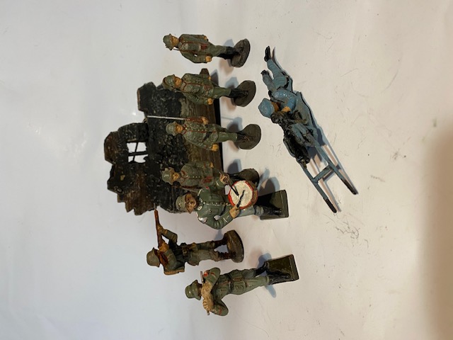 8 Figuren - Soldaten - Schütze - MG08 - Musiker - Bunker Haus - Elastolin & Lineol - ca.7,5cm groß - einige beschädigt - Alles 100% original 30er Jahre in gutem gebrauchten Zustand - Paketversand 9,90 Euro mit DHL in der BRD - Bei unversichertem Versand übernehme ich keinerlei Gewährleistung - Bei Geboten auf weitere Artikel Unkosten erfragen. Unklarheiten vorher klären und nicht hinterher beschweren. Mit Abgabe des Gebotes akzeptieren Sie die angegebenen Versand und Unkosten sowie die Verkaufsbedingungen.