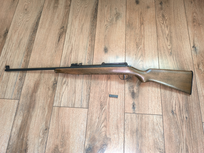 Verkaufe ein Luftgewehr. Das Gewehr ist alt und ich denke das es sich um ein Blitz ohne Logo handelt. Ein Freund von mir hat ein Blitz und das Gewehr ist identisch mit meinem. Flügelsicherung ist vorhanden, jedoch ohne Funktion. Ansonsten voll funktionsfähig. Dabei ist ein Original Haenel Magazin 8er DRP. Privatverkauf, keine Rücknahme.