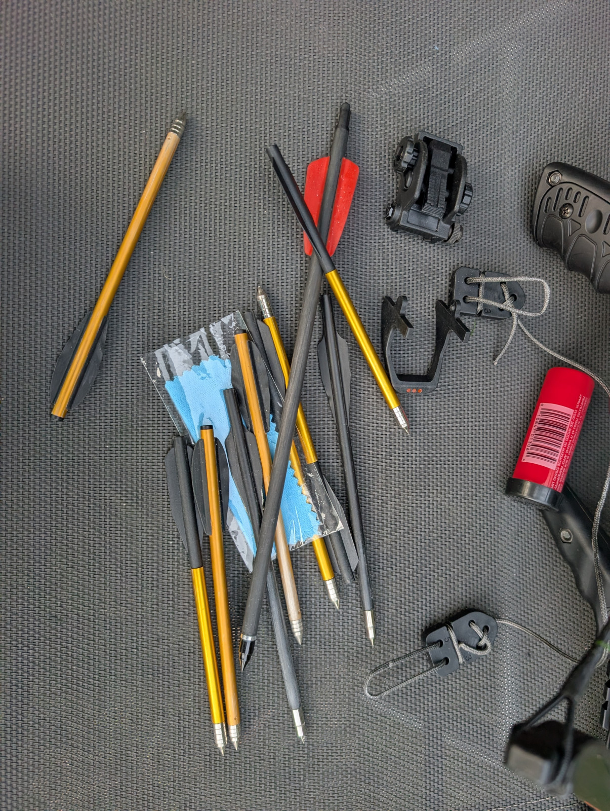 Verkaufe diese Armbrust. Stammt aus Räumung, wurde so aufgefunden. Sicherung hinten abgebrochen, lässt sich nicht entspannen/abschiessen. Viel Zubehör dabei.