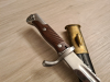 Zum Verkauf kommt eine Reproduktion eines SG98 a.A. mit Säge. Zustand des Bajonetts ist neuwertig, wurde nur als Dekoobjekt gebraucht. Lediglich am Mundblech der Scheide sind leichte Verfärbungen durch das Leder des Frosches zu sehen, was sie aber sehr echt und alt aussehen lässt. Drücker funktioniert, Bajonett lässt sich auf Gewehre der 98er-Familie aufpflanzen.