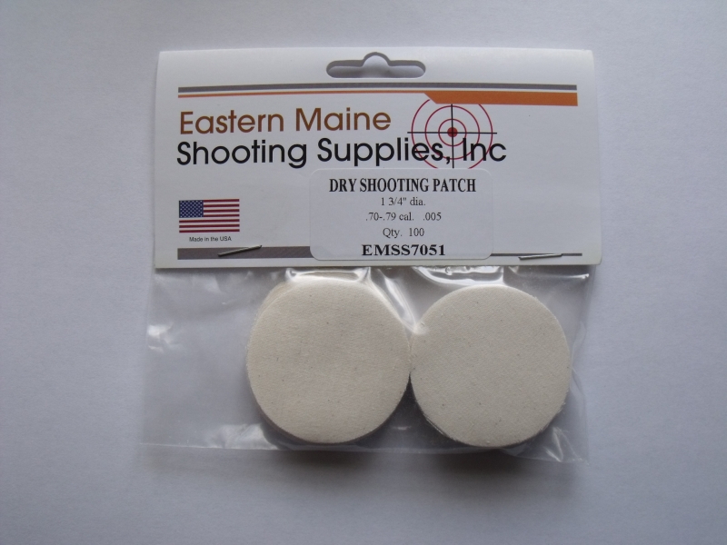 Angeboten werden 100 Schusspflaster von "Eastern Maine" für .70 - .79 cal, ein Spitzenprodukt Made in USA. Die Pflaster sind aus ausgesuchten Stoffen von gleichbleibender Qualität, die zu 100% aus Baumwolle gefertigt sind. Sie haben einen Durchmesser von ca. 45 mm und sind in den folgenden Stärken erhältlich: